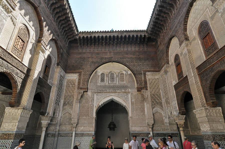 Architectural jewel, the Attarine madrasa is also one of the major witnesses of the technical nature of the work of artisans of the Marinid era. Characterized by the finesse of execution and lightness of its decor, this residence school is one of the masterpieces of the Merinid dynasty. Anxious to establish their authority both political and religious, sovereign mérinides provide special care in building this place of knowledge transmission. Thus we counted in Fez, the Merinid madrassas: Bou'Inania, Sahrij, Sbaiyine, all responding to the exaltation of ornamental mérinides.